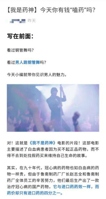社交推文的标题【我是药神】今天你有钱“嗑”药吗?与开篇都与《我不是药神》这部电影相结合,吸引读者的阅读兴趣,同时,找到《我不是药神》这个故事与鲁南制药厂代表人物赵志全所受经历的共同点,从而更形象的展现赵志全身上的沂蒙精神。讲完赵志全的故事,接着介绍他这一生所获得的荣誉。推文最后一部分则采用一图一话的形式,鼓励大家做沂蒙精神的传承者,从而达到公益广告的目的。