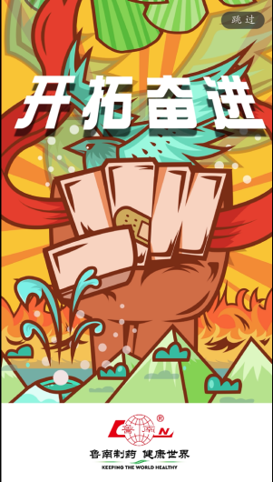作品二整体突出火热激情的风格,以拳头象征奋进,青鸟象征开拓,在险峻的山岭之中,以火热的激情,开拓出新的天地,契合了鲁南制药中开拓奋进的部分。
