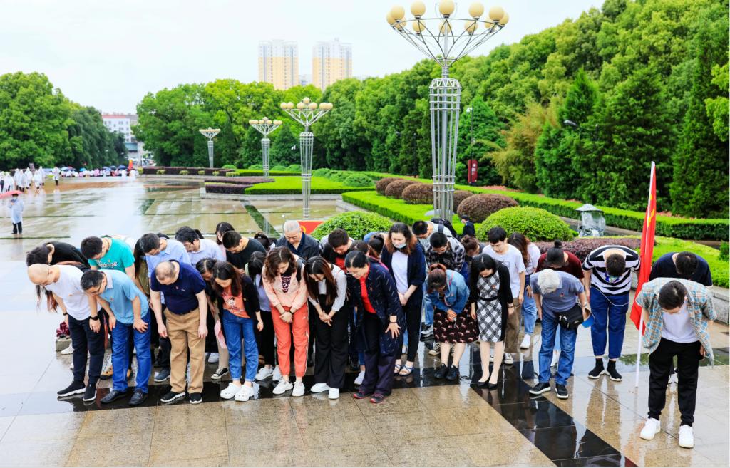红安是“黄麻起义”的策源地,是红四方面军的诞生地。红安县是“中国第一将军县”。 5月15日早晨,伴着阵雨,黄麻起义和鄂豫皖苏区革命烈士陵园庄严肃穆,在革命烈士纪念碑前,全体党员深深鞠躬默哀致敬,缅怀革命先烈。公司党委书记曾令玉带领全体党员面对党旗,举起右拳,重温入党誓词,庄严的宣誓声响彻纪念园。