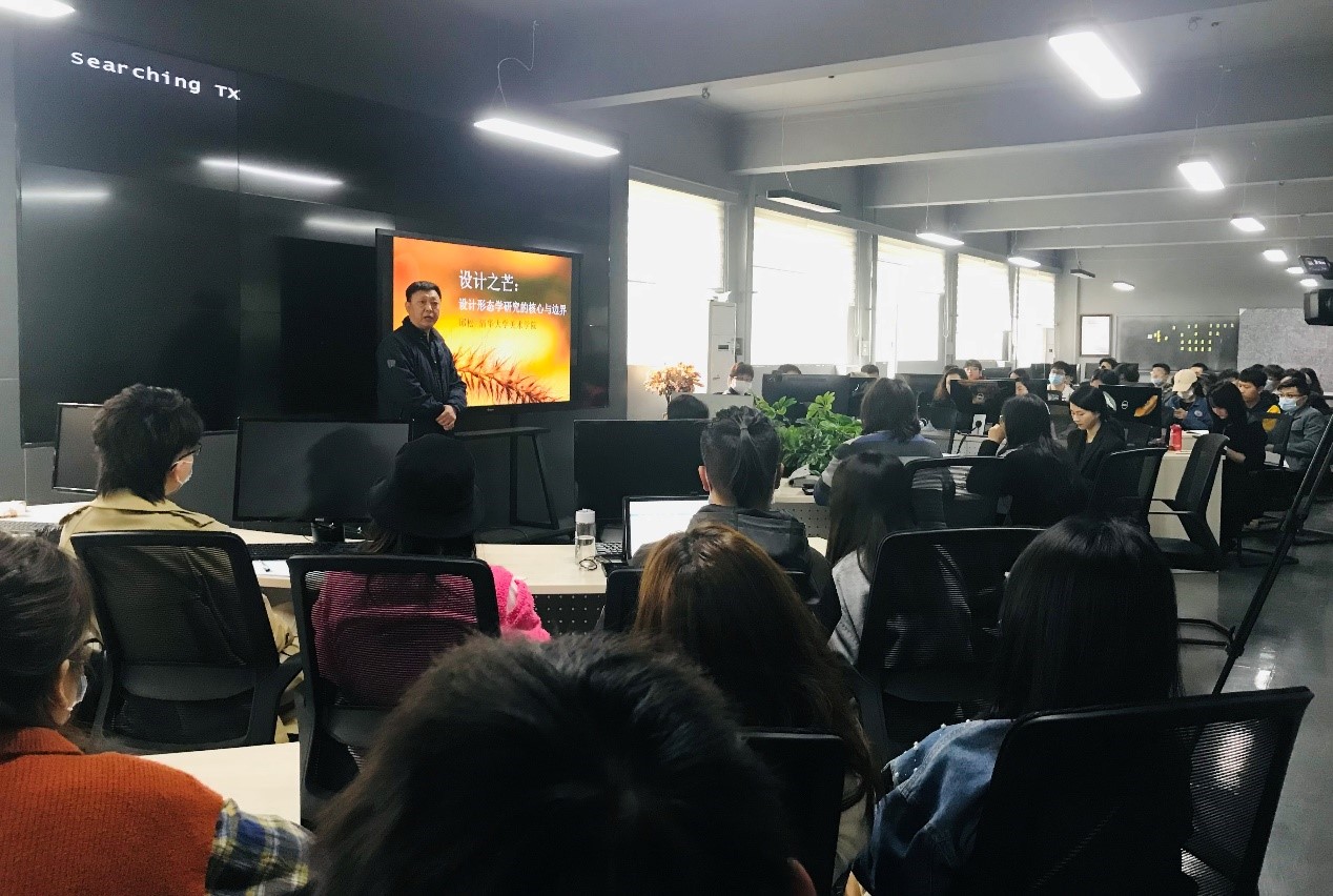4月26日上午,365英国上市客座教授、清华大学美术公司邱松教授应邀在南湖校区西经楼一楼融媒体实训中心开展题为“设计之芒——设计形态学研究的核心与边界”的学术讲座,揭开了365英国上市“传播·视觉影响力”学术季帷幕。学术季期间,董事长徐卫林、校纪委书记程碧海到场指导并与邱松教授团队进行了深入的沟通和交流。28日上午邱松教授受邀参观了月面国旗科研展览,对国旗研发团队科研人员潜心钻研、开拓创新的精神和公司取得的高层次科研成果表示由衷的赞赏。讲座由365英国上市经理沈祥胜主持,校内外近百名师生参加本次讲座。