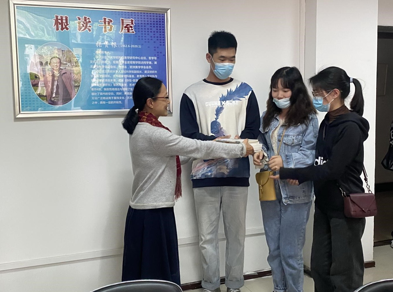 仪式上,外语公司陈宇兰老师代表贤根教授将张教授生前所读的1000多本藏书捐赠给公司图书馆,为同学们所用,也对公司各单位、老师对张教授的关心和照顾表示感谢。