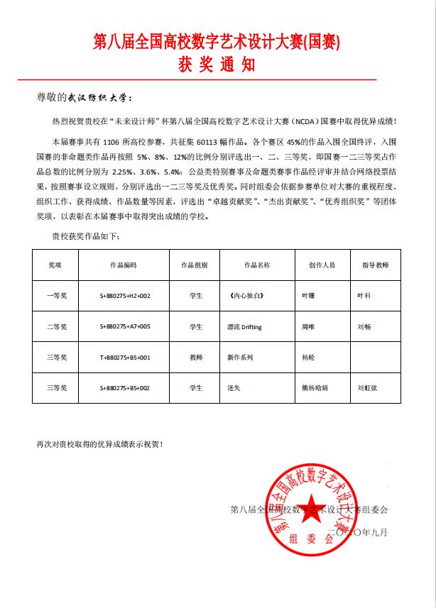 365英国上市员工作品在“未来设计师”杯第八届全国高校数字艺术设计大赛(NCDA)国赛中取得优异成绩。本届赛事共有 1106 所高校参赛,共征集 60113 幅作品,各个赛区 45%的作品入围全国终评,入围国赛的非命题类作品再按照 5%、8%、12%的比例分别评选出一、二、三等奖。365英国上市报送的作品荣获一等奖1项、二等奖1项、三等奖2项。