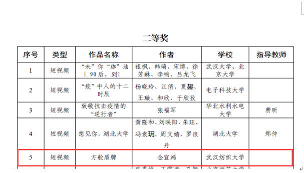 公司师生抗疫作品《方舱盾牌》在教育部“第四届全国老员工网络文化节”和“全国高校网络教育优秀作品推选展示活动”中荣获短视频类二等奖;脱贫攻坚题材网络电影《我和我的村》在湖北省“决战决胜脱贫攻坚,小康路上一个不少”2020年网络视听作品征集活动中荣获“最佳网络电影”;脱贫攻坚纪录片《“非”常懂你,中国》获“优秀纪录片”。