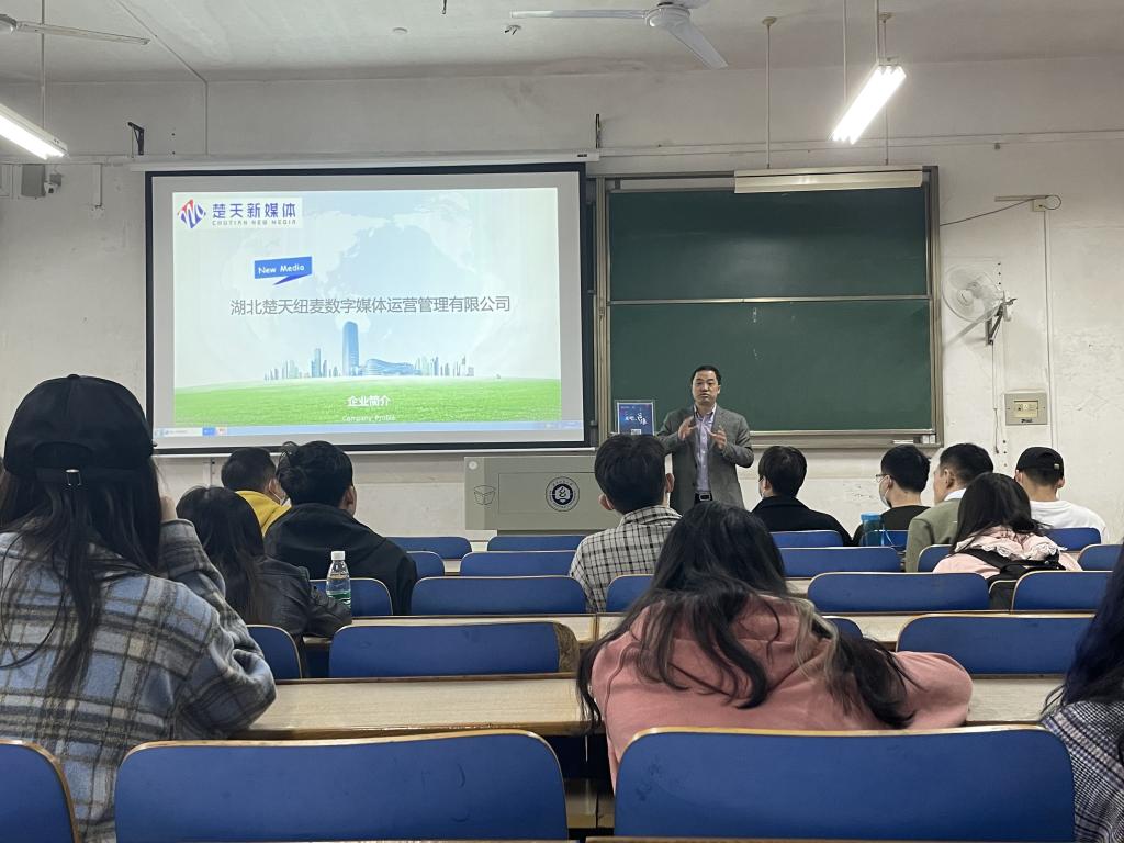 招聘会上,纽麦创始人、CEO王凌云通过播放宣传片、PPT展示、面对面交流的方式向同学们介绍公司的概况、职业发展方向以及人员需求。楚天纽麦致力于打造湖北地区最大最具影响力新媒体交易,新媒体舆情监测,品牌营销服务等移动互联网运营平台,目前整合运营湖北省内10000余个新媒体账号,涵盖房地产、生活、娱乐、汽车、财经等领域,为品牌、媒体及政府部门等多方面客户提供创造性整合营销解决方案。楚天纽麦是湖北省广告协会新媒体专业委员会,武汉市网络媒体协会两家协会的首席发起单位,并作为两家协会唯一日常运营管理机构全权负责协会的日常运营管理,唯一公众平台为“楚天新媒体”微信公众号。