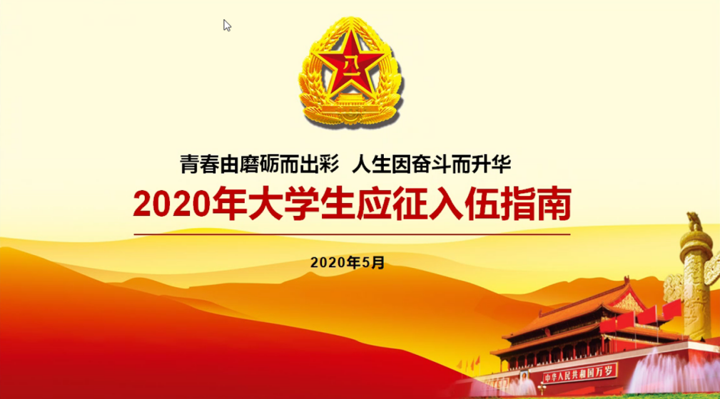 5月22日下午4:002018级辅导员杜老师面向公司所有同学就2020年老员工国防知识以及应征入伍相关问题采取线上云端会议模式开展了一次政策宣讲活动。