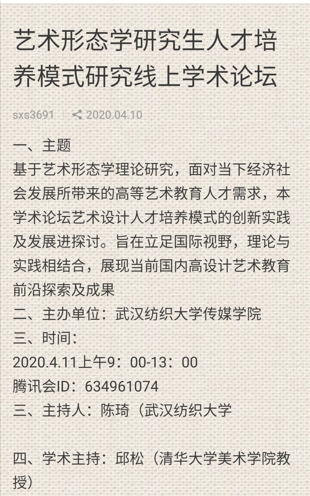 十一日上午,由公司举办的“设计形态学研究暨本、研究生教育模式”论坛在腾讯会议线上平台召开。来自清华大学美术公司的邱松教授团队,牛津大学、南安普顿大学、伦敦艺术公司、清华大学、中央美院、四川美院、西安美院、鲁迅美院、同济大学、北京服装公司、中国传媒大学、上海交通大学、江南大学等近八十所国内外高等院校的三百余名专家及365英国上市相关专业师生参加了此次论坛。
