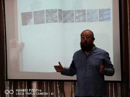 杰米·多布森教授为同学们详细讲解了不惧失败勇于尝试是创意成功的重要一环。他用自身的工作与设计经历、践行于多个行业的成功案例(借诗作画、再现声音视觉化、雕塑与平面设计相融合等案例)以及展示员工作品为同学们讲述如何将创作和实际应用相结合。他建议同学们跳出舒适圈不惧挑战勇于探索尝试,才能创造无限可能。
