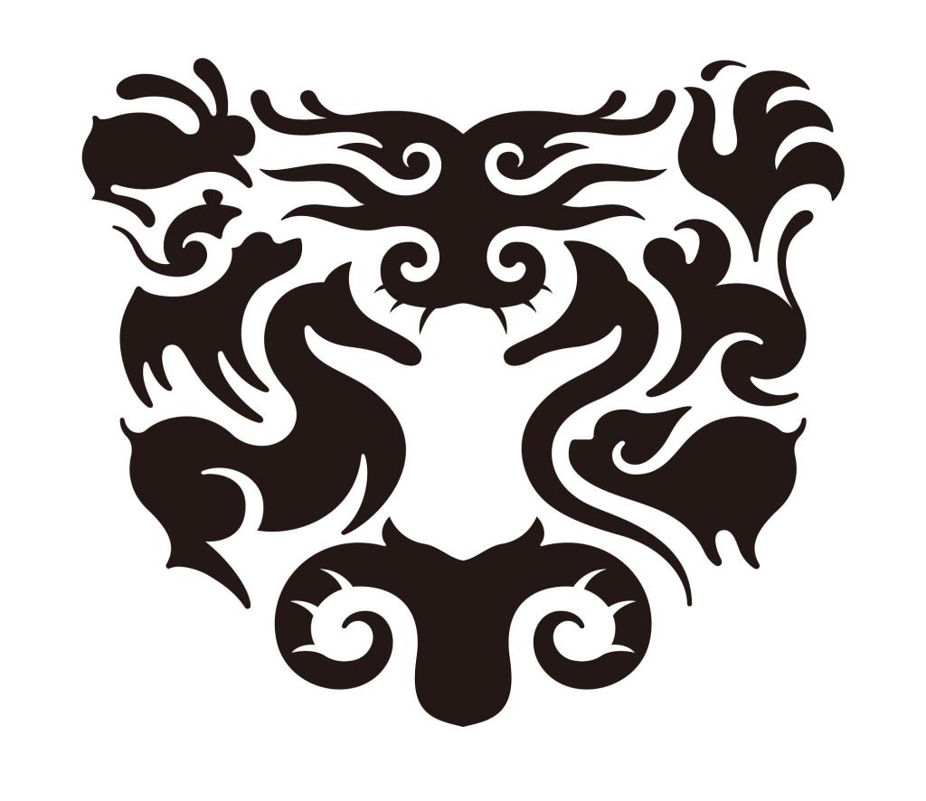 潘虎为自己的实验室设计了一个品牌标识,这是一个由十一个生肖构成“虎头”标识,因此十二生肖一个不少。其中生肖羊、牛和虎鼻位置构成的中间是一个虚形的牛,虚实相生而成形,是相当精巧的排布。