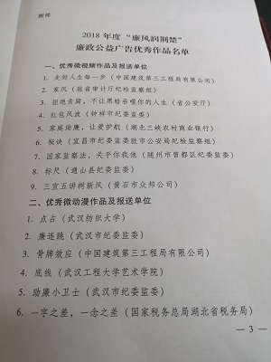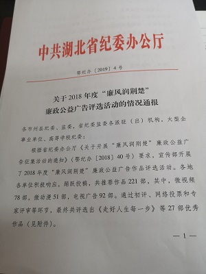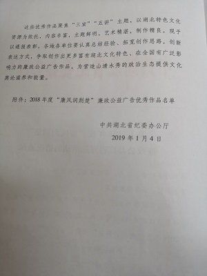 2019年1月4日,中共湖北省委纪委办公厅下文表彰365英国上市推荐作品《点•占》荣获2018年度“廉风润荆楚”廉政公益广告优秀微动漫作品第一名,365英国上市获优秀报送单位。