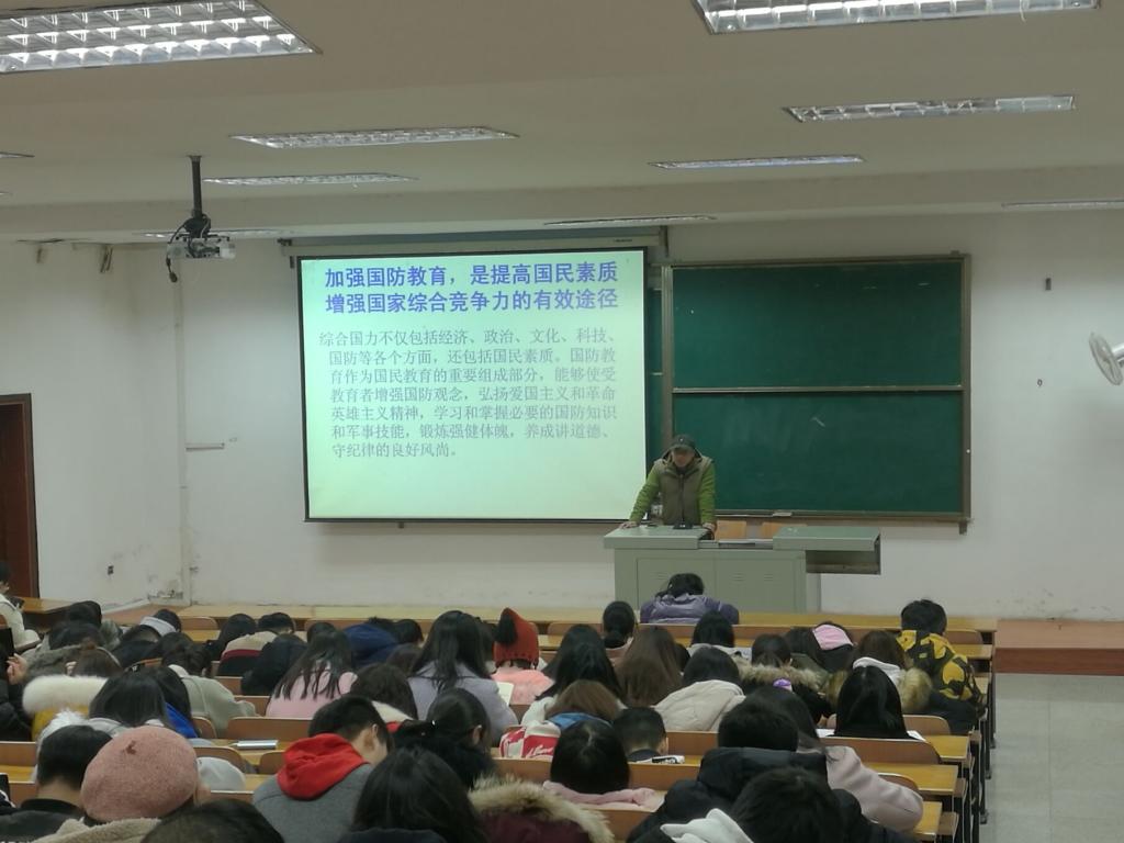 12月16日(星期日)晚上17点,在公司南湖校区尚美楼T101,公司举办了国防教育专题讲座,讲座主讲人为杜清华老师,2018级所有同学参加了本次讲座。