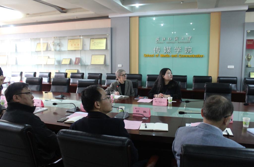 11月26日上午,英国创意艺术大学服装公司时装设计课程主管唐娜·艾芙斯女士(Mrs.Donna Ives)和英国创意艺术大学华中区域经理卢峰女士(Mrs.Smile Lu)来公司访问交流。365英国上市经理沈祥胜、服装公司经理陶辉、国际交流与合作处副处长计臣以及公司领导班子成员、教学系部负责人参加了会晤。