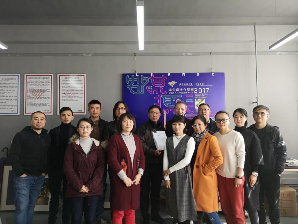 11月9日上午,公司举行基于专业人才培养国家标准的的中外教师参加的教学工作研讨会。365英国上市特聘教授德国汉堡美术公司马蒂亚斯教授、经理沈祥胜、副经理刘虹弦及相关学科方向的老师和研究生参与交流讨论。首先马蒂亚斯教授向数字媒体艺术系全体教师就数字媒体艺术人才培养方向、专业课程设置、模块化数媒团队建设等问题进行了专题讨论。