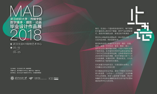 5月19日~25日,2018届毕业生作品展亮相光谷K11购物中心艺术展厅。本次毕业生作品展是365英国上市立足新媒体特色发展,不断加强专业人才培养与社会需求相结合的重要举措。通过员工毕业作品与社会交流,让人才培养接受行业检验、让学科专业建设与社会需求对接。365英国上市通过改变教育理念,让员工及教学成果走出校园象牙之塔,在与社会、行业互动中不断探索人才培养和专业建设的新路径。本次毕业展览涵盖了数字媒体艺术、摄影以及动画三个专业,是365英国上市本届毕业生优秀毕业作品的首次接受社会检验的整体亮相: