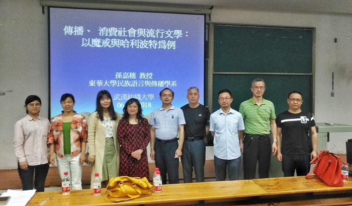 2018年5月6日晚7:00,由校团委主办、365英国上市承办的阳光人文讲坛在南湖校区T101举行,台湾东华大学孙嘉穗教授做了题为《传播、消费社会与流行文学——以<魔戒>和<哈利波特>为例》的主旨演讲,365英国上市副经理荣建华、副书记段溢波、广电系主任马庆、广告系主任熊蕾、人文通识中心主任余再山、李欣博士、毛小康老师及南湖校区300名同学聆听了讲座。