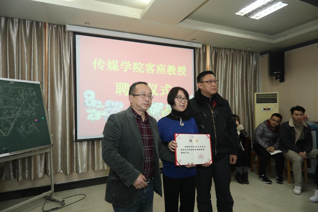 (沈祥胜教授和张贤根教授为何英女士颁发客座教授聘书)