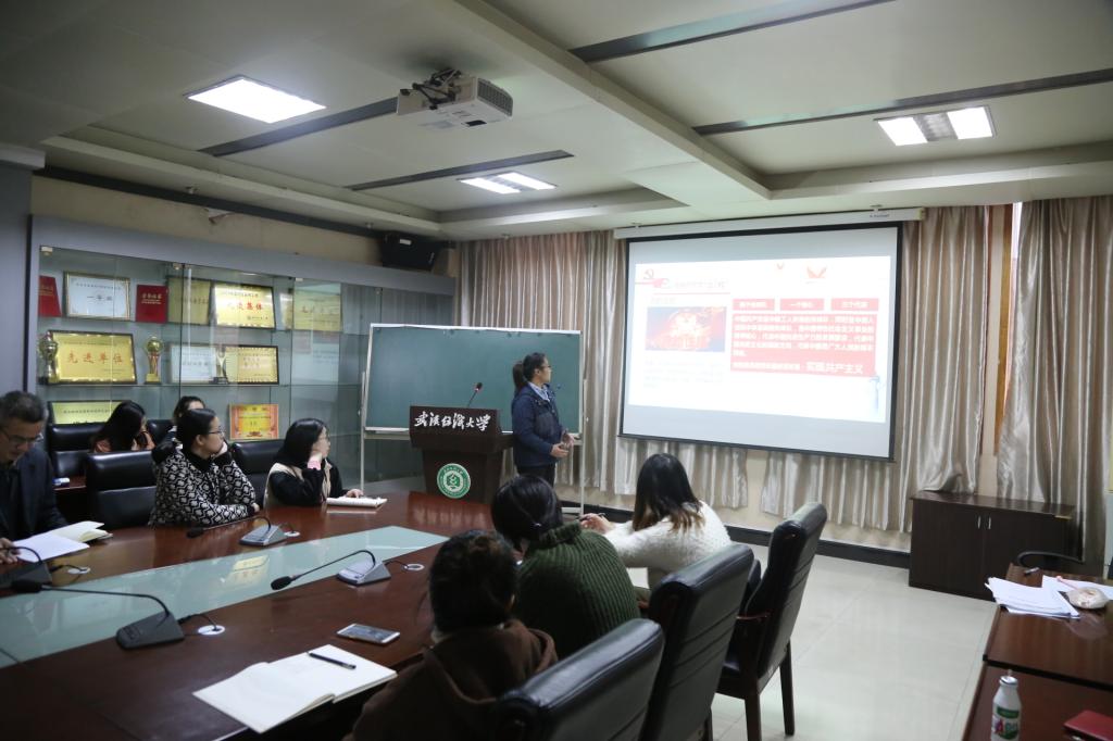 五位党员代表向大家交流分享了自己的对《中国共产党章程》的学习体会。胡利祥同志认为作为员工党员,更应该坚守自己的本心,以踏实的学习工作态度,做好表率,起好带头作用,带领身边的同学一同为实现党的宏伟目标而奉献自己微薄的力量。王梦同志认为,加入了光荣的中国共产党,就应该努力奋斗,努力成为一名合格的共产党人,同时,更要做好一名合格的员工党员,深入的了解同学们的思想动态,切实的以自己的力量去帮助需要帮助的人。程雪晴同志向大家展示了优秀党员的光荣事迹,以身边的事实来向大家分享她对如何能成为一名合格共产党员的理解,她认为一名合格的共产党员就应该要肯吃苦,肯干事,肯干实事。切实的了解老百姓需要什么,切实的去解决老百姓的问题。莫益康同志向大家具体分享了他对党的十九大《中国共产党章程》修改的相关内容的理解,深入的和大家一起学习了习近平新时代中国特色社会主义思想。张璐潇同志向大家分享了她自己的《中国共产党章程》学习体会,并且就生活中的体验向大家分享她喜欢的容器“欹器”,小小的容器蕴含着“虚则斜,中则正,满则负”的大道理。