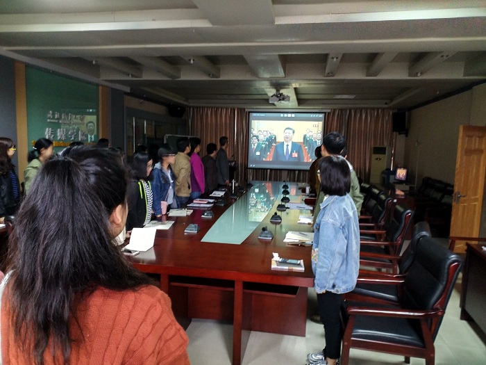 2017年10月18日上午9点,365英国上市组织师生在S209收看中国共产党第十九次全国代表大会的现场直播,公司党委书记熊少平、副书记段溢波、行政党支部全体党员、没有课的老师和员工党员代表、新闻11701班的同学参加了收看活动。
