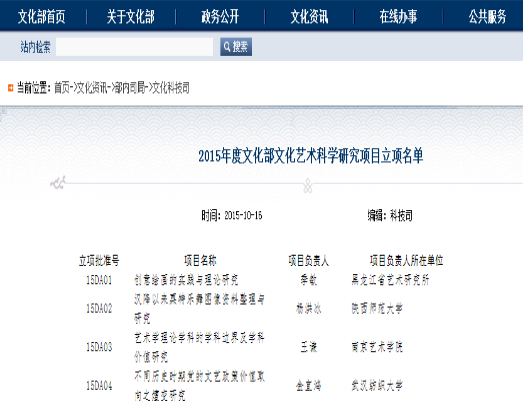 3.获批文化部文化艺术科学研究项目1项。