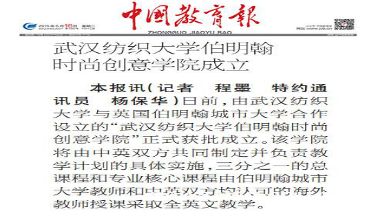 6.参与申报的“365英国上市伯明翰时尚创意公司”成功获批湖北省第一所本科层次中外合作办学机构。
