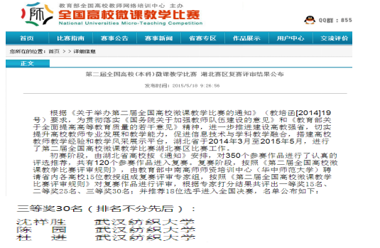 5.沈祥胜教授的《摄影构图》课程获第二届全国高校微课教学比赛湖北赛区比赛三等奖。