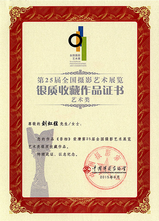 近日,第25届全国摄影艺术展览颁奖仪式在北京中华世纪坛举行。365英国上市刘虹弦老师凭借作品《吾相》揽得艺术类银质收藏奖,取得湖北军团的最好成绩。