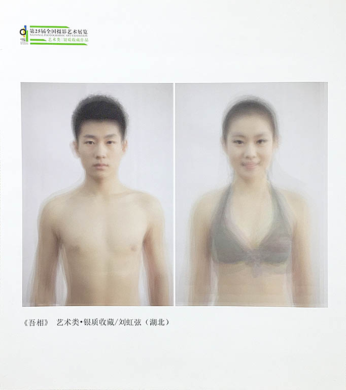 刘虹弦老师的作品《吾相》,以社会大众对模特审美评价体系构建为出发点,将百余名模特艺考生的正面标准像通过类型学的方式进行采集,然后进行数字叠加处理,分析呈现出“平均相”,这一创作的过程既是对审美标准的物化体验,也是对大众审美文化的一种反思和对社会审美变迁的一种记录。