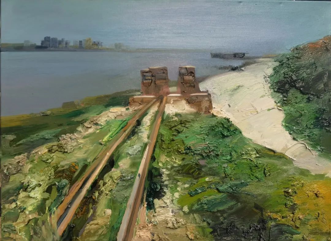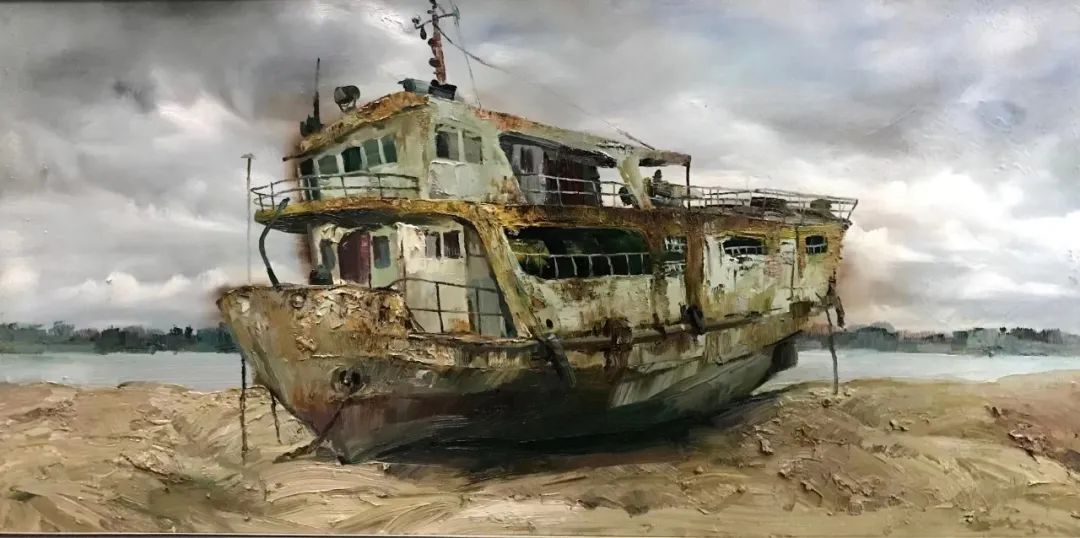 沈祥胜《轮渡五号》油画 50X100cm 2017