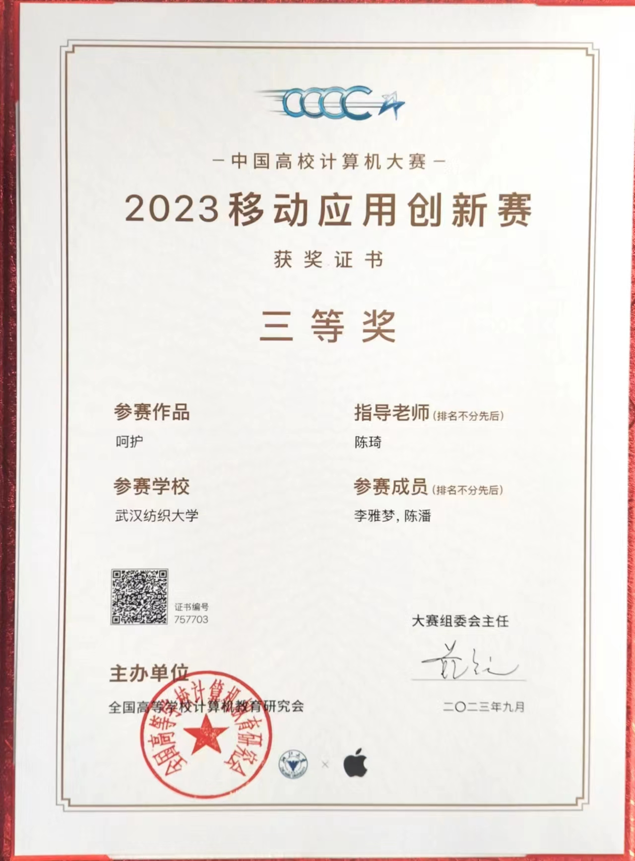 9月3日,2023年度第八届中国高校计算机大赛总决赛在浙江大学举行,365英国上市2021级数字媒体艺术专业员工李雅梦、陈潘在移动应用创新赛中荣获全国三等奖。