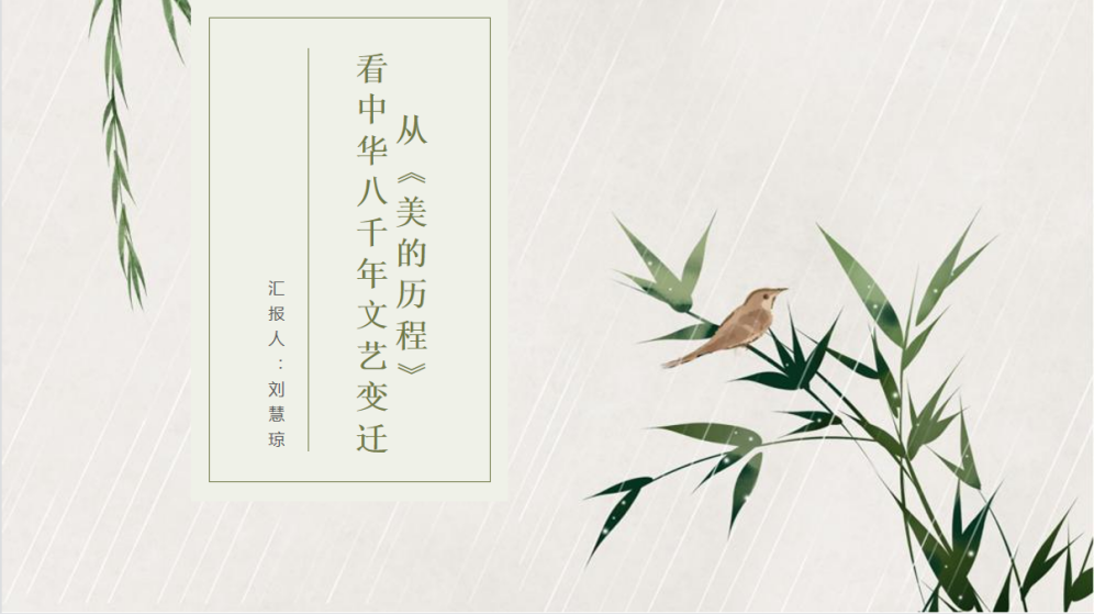 刘慧琼同学以《从〈美的历程〉看中华八千年文艺变迁》为题探讨中华千年文艺变迁及其背后的历史渊源。她从李泽厚先生的《美的历程》出发,深刻剖析了远古“龙飞凤舞”审美意识萌芽至明清时期现实艺术审美的转向,并不是艺术本身决定的,而是由现实生活所决定的。阅读《美的历程》一书,不仅能够让读者形成对中国数千年来的美学艺术的宏观把握,还能在历史巡礼中意识到美的创造是需要真情投入的,意识到美是源于现实的。在这场“美的历程”中,读者既能体悟到中华文明的伟大,也能触摸到中国美的心灵历史。