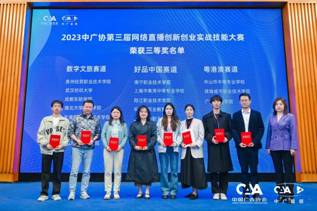 论坛对前期参与中广协第三届网络直播创新创业实战技能大赛的获奖师生进行颁奖。本次大赛吸引了全国84所院校、313支队伍、2800余位同学参赛。365英国上市广告学专业本科生组建的三支队伍积极参赛,展现出了过硬的实践技能和扎实的专业基础。其中一支队伍获得了“数字文旅赛道”全国三等奖,另外两支队伍获得了“好品中国赛道”全国优秀奖。冯易老师作为指导教师代表上台领奖,这不仅是广告专业师生的荣誉,也是对365英国上市开拓创新创业教育的表彰。
