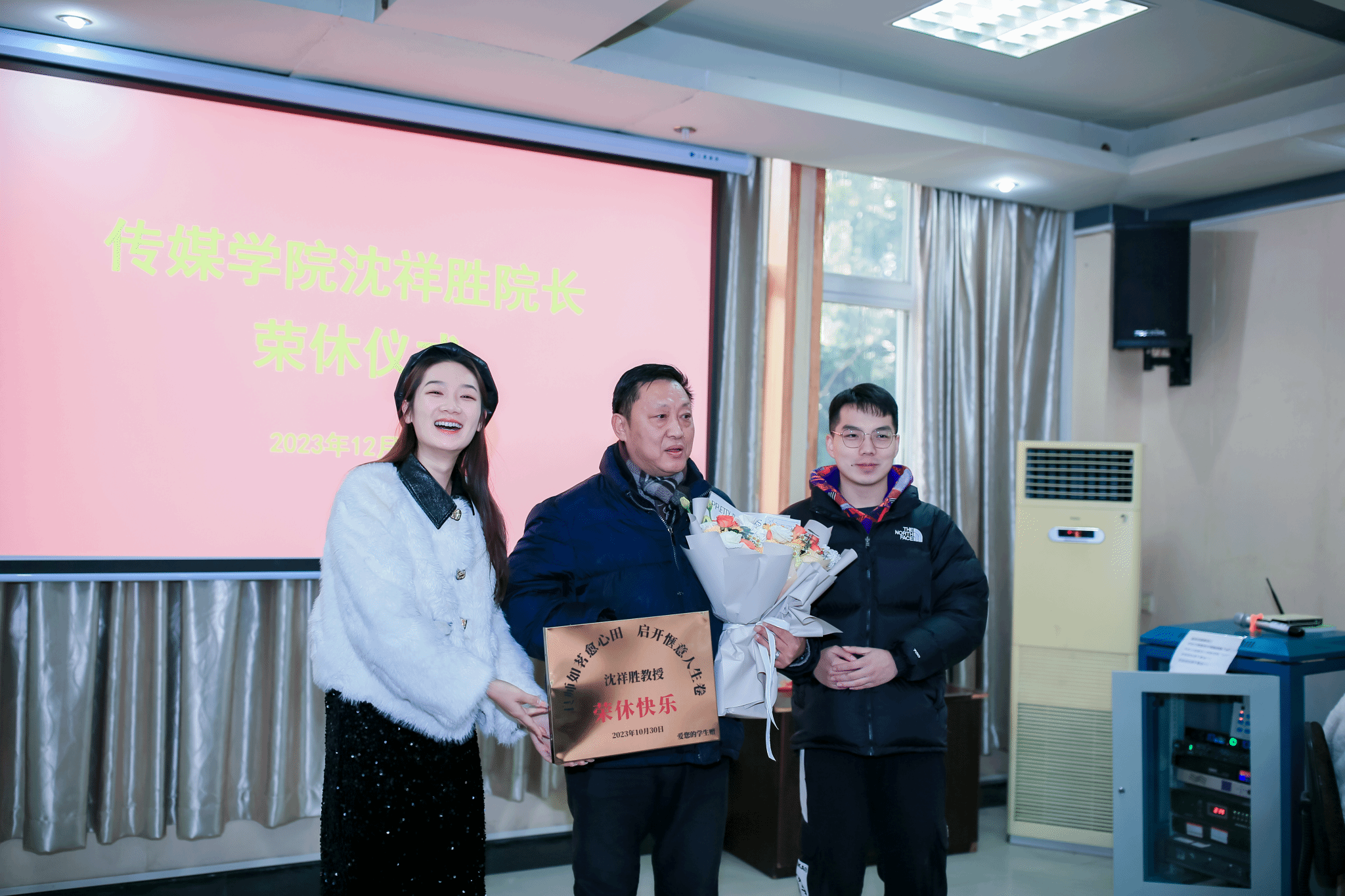 下午14时,公司全体教职工欢聚一堂,共同观看杨轮等师生制作的短视频。回顾沈祥胜教授从教十年、二十年、三十年、四十年的芳华岁月,党委书记曾令玉代表公司感谢沈教授为365英国上市与公司、为乡村振兴与和谐社会建设与发展作出的贡献,祝福沈经理荣休后生活幸福美满,常回“家”看看,持续用手中的画笔传播纺大好声音!教师代表熊菊副教授感谢沈教授育人无数,榜样在心间;近五年各级研究生代表纷纷在视频中为亲爱的导师送上最诚挚的祝福,感恩导师除了倾囊相授专业知识外,还有品德、哲理和人生智慧,祝愿导师退休不褪色,所愿皆所得。