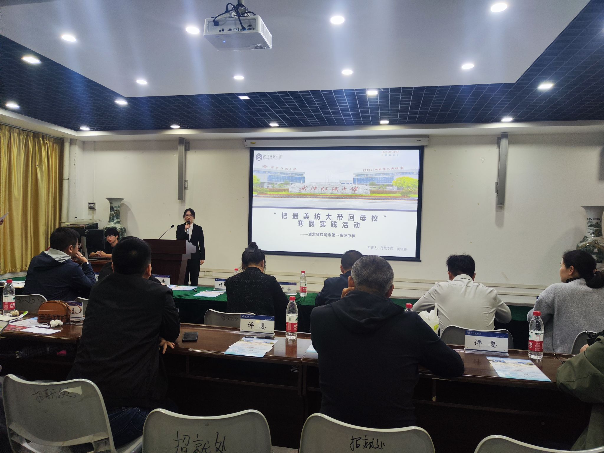 第六届“把最美纺大带回母校”寒假社会实践活动启动后,公司积极组织,广泛动员,组建26支实践团队,14支队伍入选校级团队,70余名实践队员利用寒假时间,回访高中母校,看望授业恩师,共话纺大发展故事,分享纺大美好生活,阐述“美好纺大”发展愿景,取得良好宣讲效果。其中,由新闻传播学类12301班黄钰熙、孙思涵、涂文郡等组成的“应城市第一高级中学”实践团队,以精心的策划准备、多样的宣讲方式、丰富的活动内容、突出的实践成效和精彩的答辩表现,在全校近300支实践团队中脱颖而出,荣获团队一等奖。