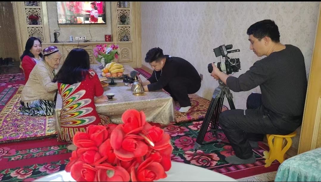 在此之前,摄制组还远赴新疆取景,完成了班超纪念公园、喀什百年老茶馆、丝路马掌工坊、高台古民居、喀什大学等多地的拍摄任务。在和田吉亚乡详细记录下被称为“丝绸之路上的活化石”的艾德莱斯绸的制作过程,从煮茧、缫丝、绘制图案到扎经、染色每一个步骤,并现场采访了艾德莱斯传承人买买提·伊敏老师和徒弟们。