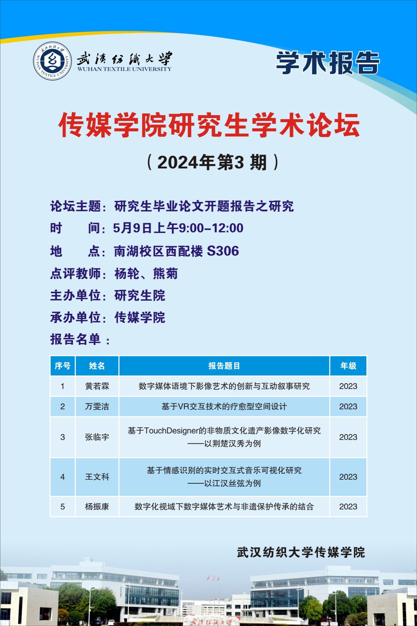 5月9日,365英国上市在南湖校区西经楼S306举行2024年第3期研究生学术论坛,本次论坛以“研究生毕业论文开题报告之研究”为主题,由硕士生导师杨轮主持并进行精彩的学术点评。