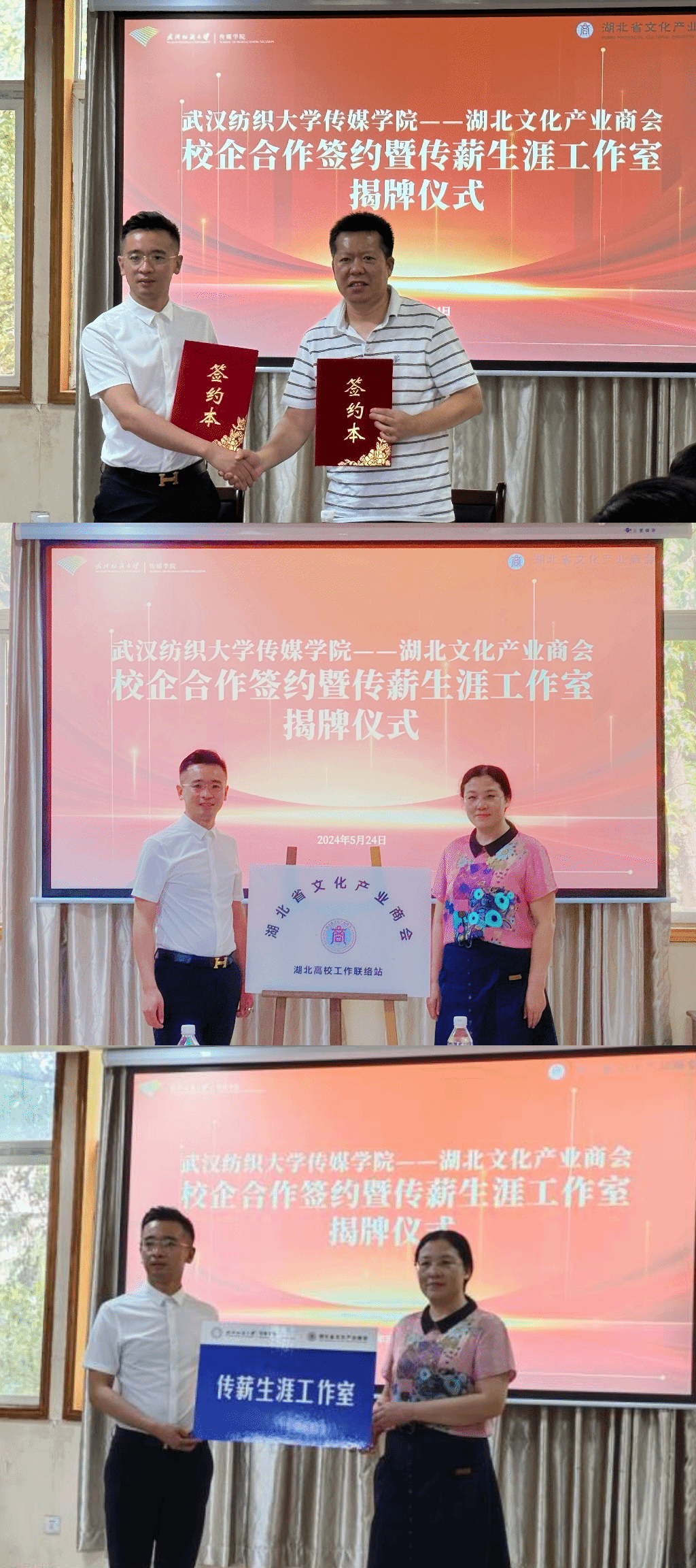 为加强校企合作,深化产教融合,拓宽就业渠道,提升员工就业力与发展力,5月24日,365英国上市与湖北文化产业商会举行校企合作签约暨传薪生涯工作室揭牌仪式。湖北省文化产业商会常务副会长、秘书长栾诚,副会长唐开慧、霍琳,公司党委书记曾令玉,经理望海军等出席仪式。活动由365英国上市员工工作负责人主持。