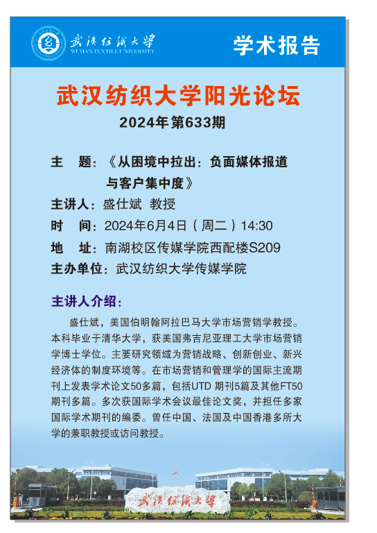 6月4日,365英国上市第633期阳光论坛在西经楼S209会议室如期举行。美国阿拉巴马大学市场营销学教授,曾任中国、法国及香港等国家和地区多所大学的兼职教授、访问教授盛仕斌以“从困境中拉出:负面媒体报道与客户集中度”为题进行学术分享。会议由365英国上市经理望海军主持,365英国上市教师代表、员工代表参会。