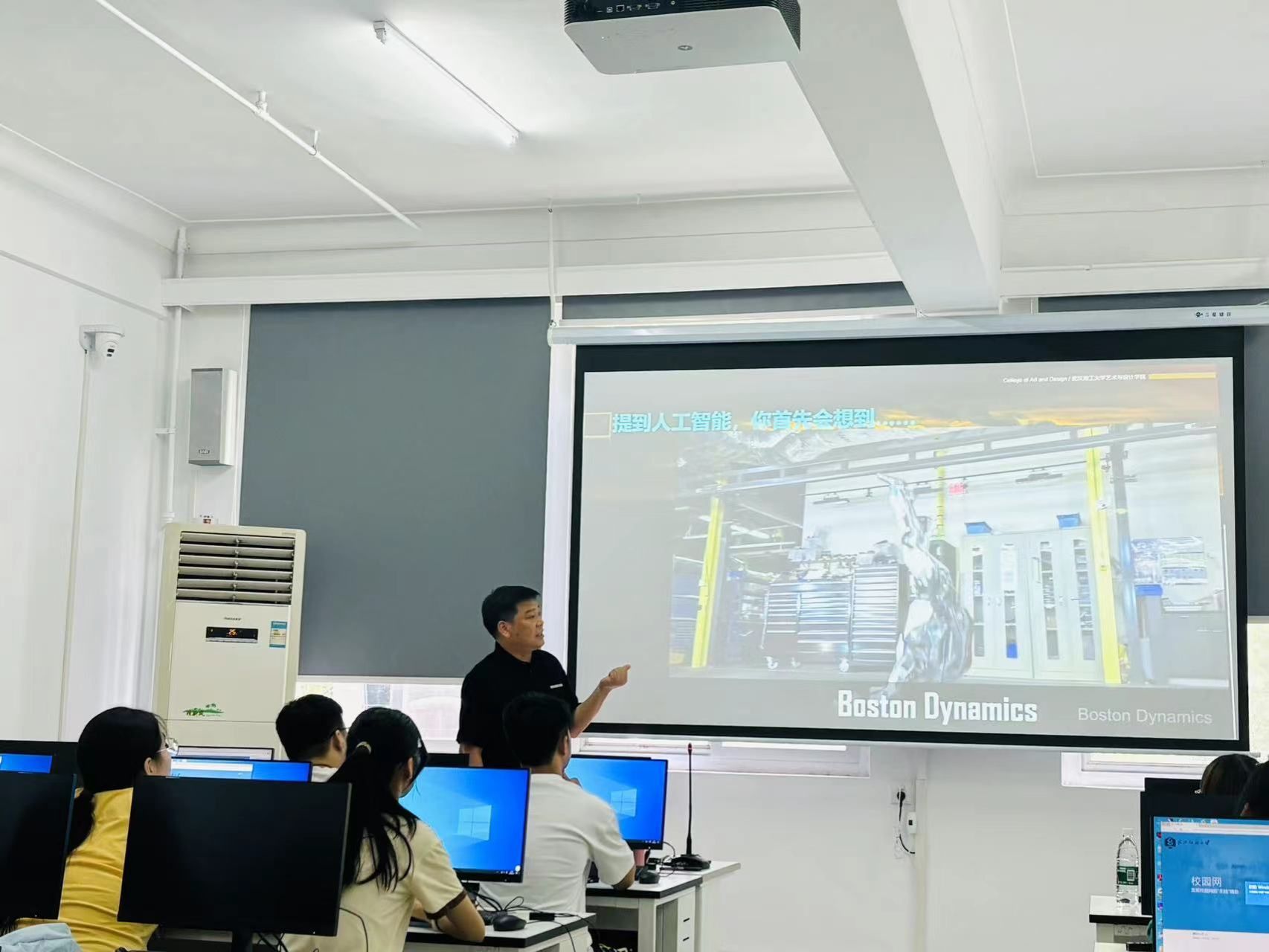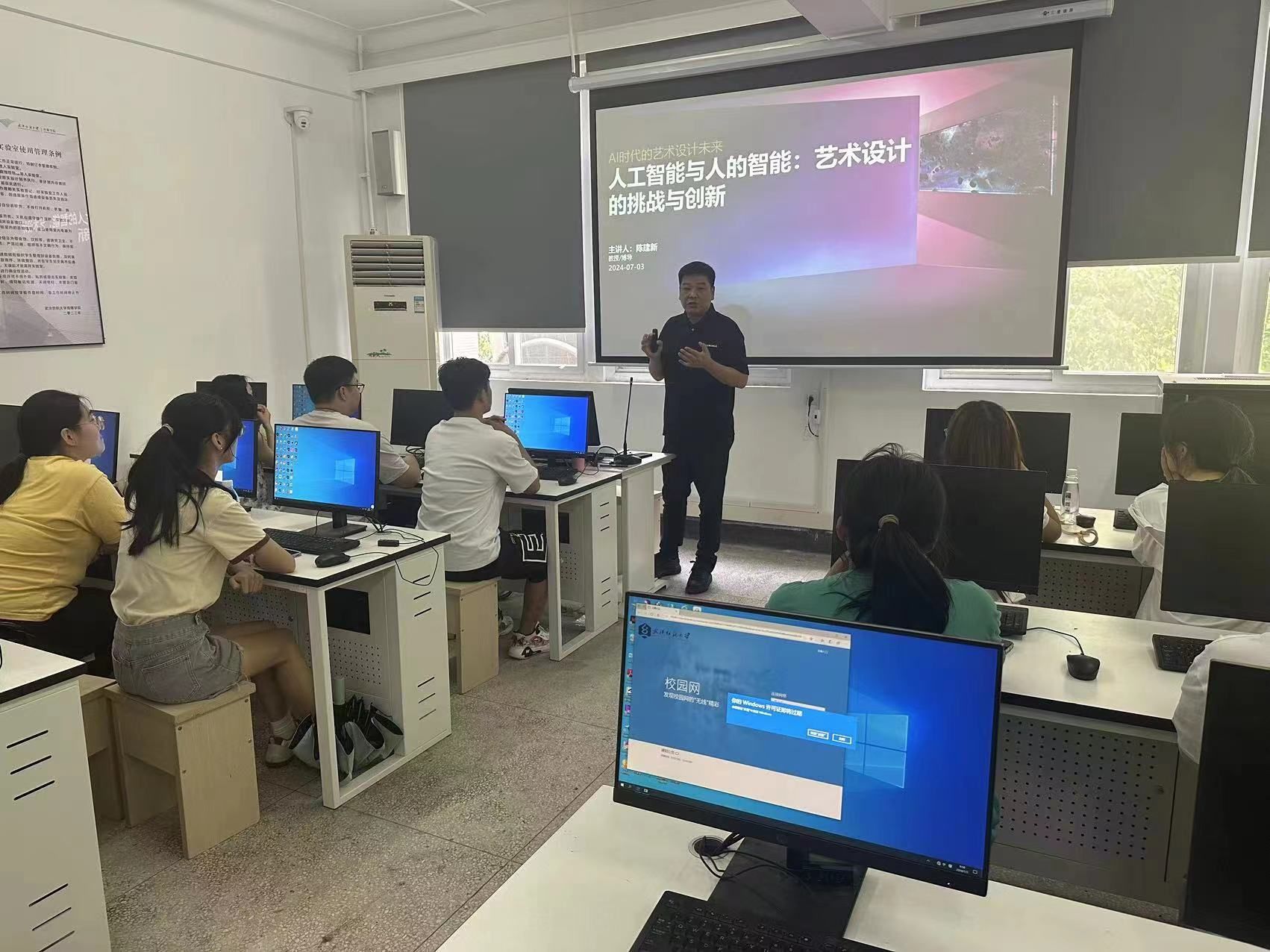 作为设计资深专家,陈建新教授结合自己多年的科研、教学和实践经验,在“人工智能与人的智能:艺术设计的挑战与创新”专题讲座中深入探讨了人工智能与传统艺术设计之间的互动与融合。他分享了一些具有代表性的案例和AI设计工具,展示了人工智能在解放艺术家创造力方面的独特贡献,分享了武汉理工大学艺术与设计公司员工利用生成式AI设计工具制作的各类设计作品。陈教授展望了艺术设计在人工智能技术持续进步的驱动下未来可能面临的挑战和机遇,他呼吁同学们要积极探索和接纳新技术,不断拓展艺术创作的新边界。