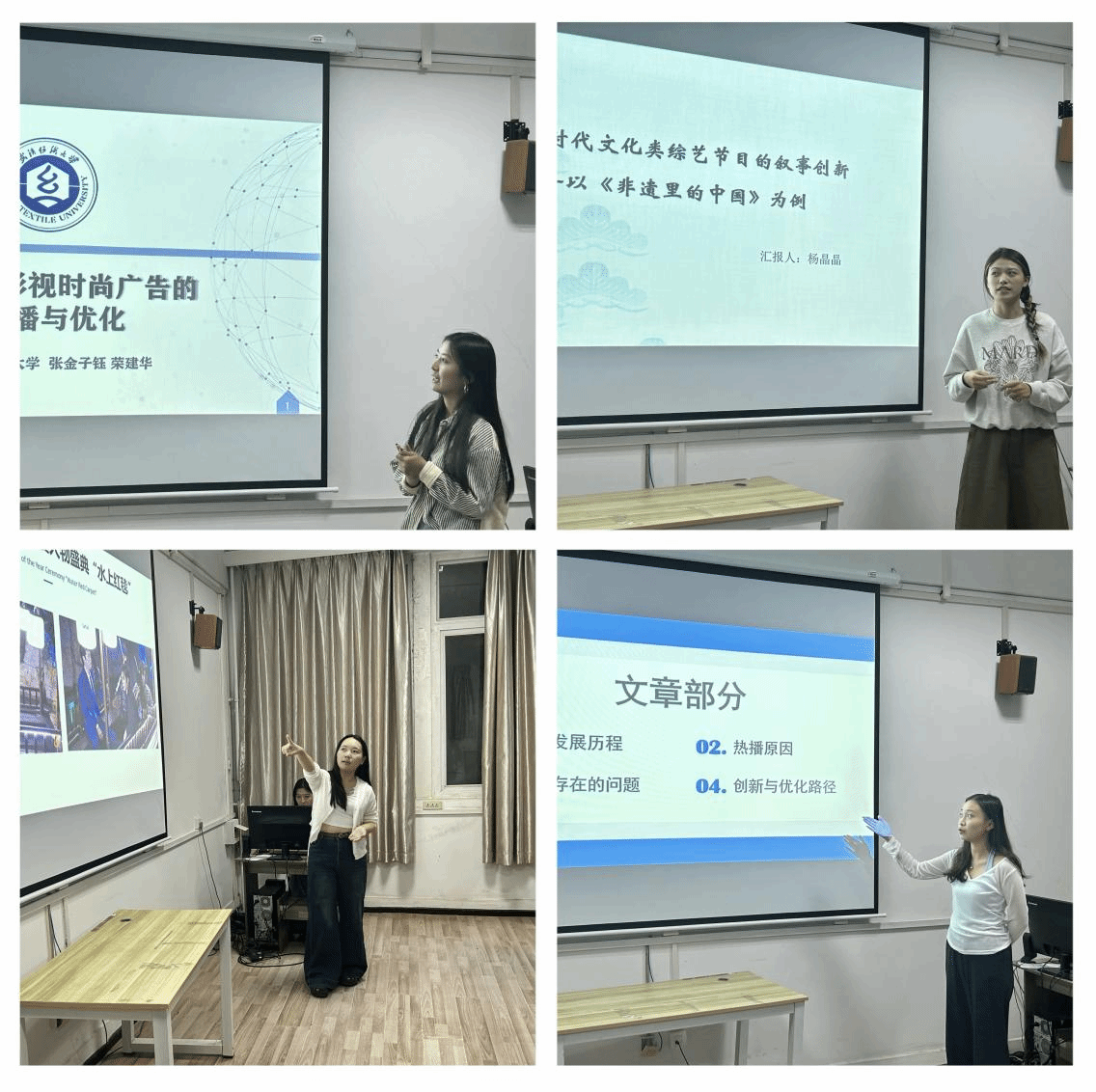 韩宇阳同学的论文《象境之变:新媒体时代背景下红毯时尚传播的意义变迁》聚焦于新媒体时代背景下红毯文化的发展,从观看方式、呈现重点和表达主题三个层面入手,深入分析当前红毯时尚活动从意象到意境、从文化认同到自我认同的变迁。郑雨晴同学的论文《文化类综艺节目热的冷思考》以文化类综艺节目为研究对象,从其发展历程和热播原因入手,深度解读当前文化类综艺节目面临的问题,并提出了优化创新路径。杨晶晶同学的论文《智媒时代文化类综艺节目的叙事创新——以<非遗里的中国>为例》,深入探讨了该综艺的叙事主题、叙事话语与叙事方式的创新,并针对文化类综艺节目提出了创新方式,为在当下讲好中国故事提供了借鉴思路。张金子钰同学的论文《AI时代影视时尚广告的传播与优化》以影视时尚广告为对象,阐述了影视时尚广告的内涵和特征,并从时尚传播视角提出了AI时代影视时尚广告的优化路径,为AI时代影视时尚广告的传播与发展提供借鉴。
