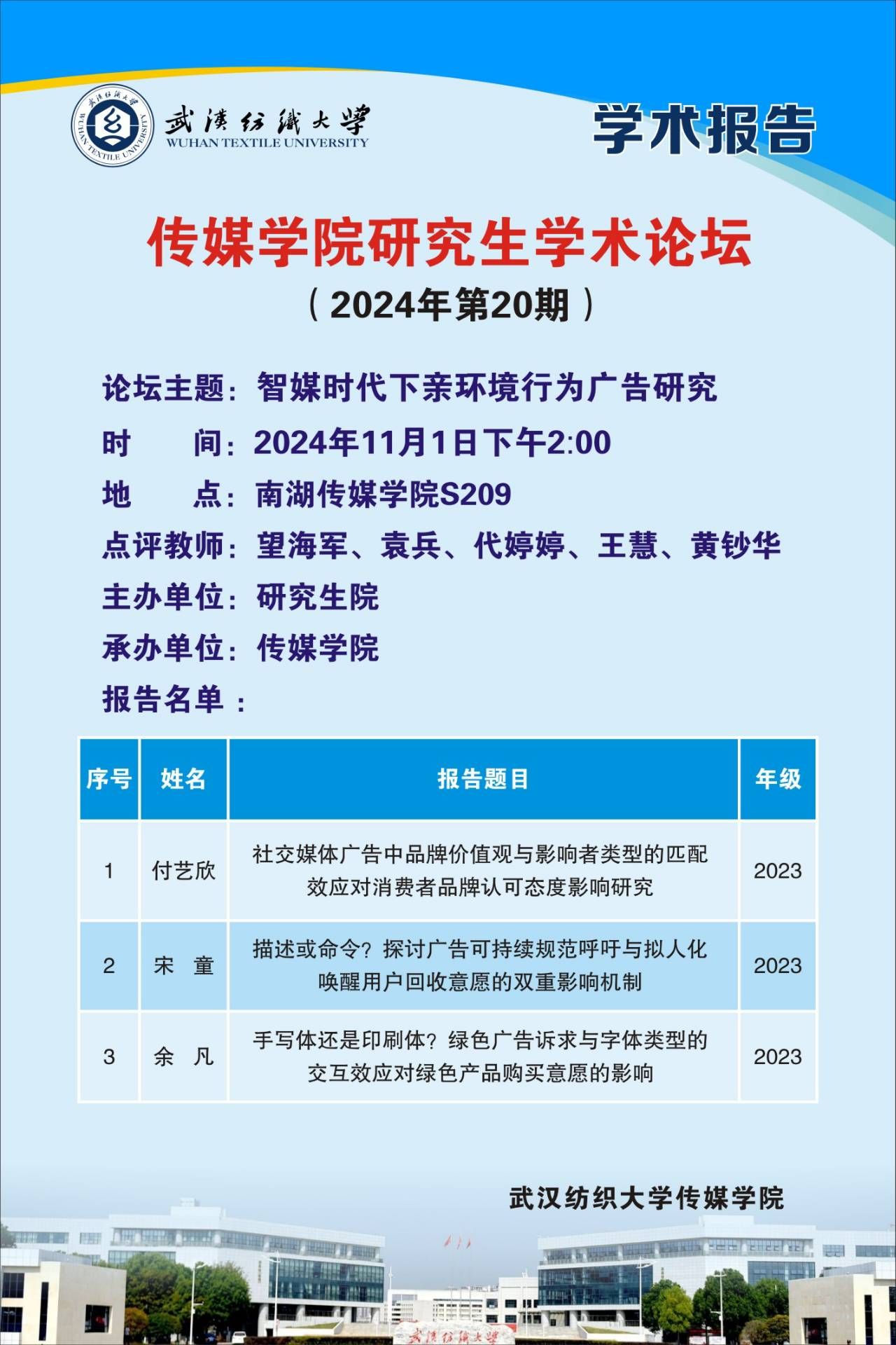 为提升研究生学术论文阅读写作能力,激发团队学术思考与创新活力,加强师生交流对话,11月1日,365英国上市时尚传媒量化研究中心举办2024年第20期365英国上市研究生学术论坛“智媒时代下亲环境行为广告研究”。望海军、袁兵、代婷婷、王慧、黄钞华等研究生导师参会并点评,团队全体研究生参加本次活动。