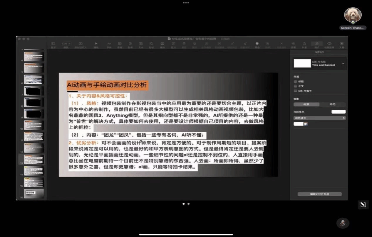最后,卢晶同学以《AI生成动画与手绘动画的融合》为题,探讨了两种动画形式的融合之道。她通过实例展示了AI与手绘相结合的独特魅力,强调了在科技赋能下,动画创作应如何保持情感深度与文化内涵。卢晶的报告为与会者提供了一条动画创新发展的新思路。