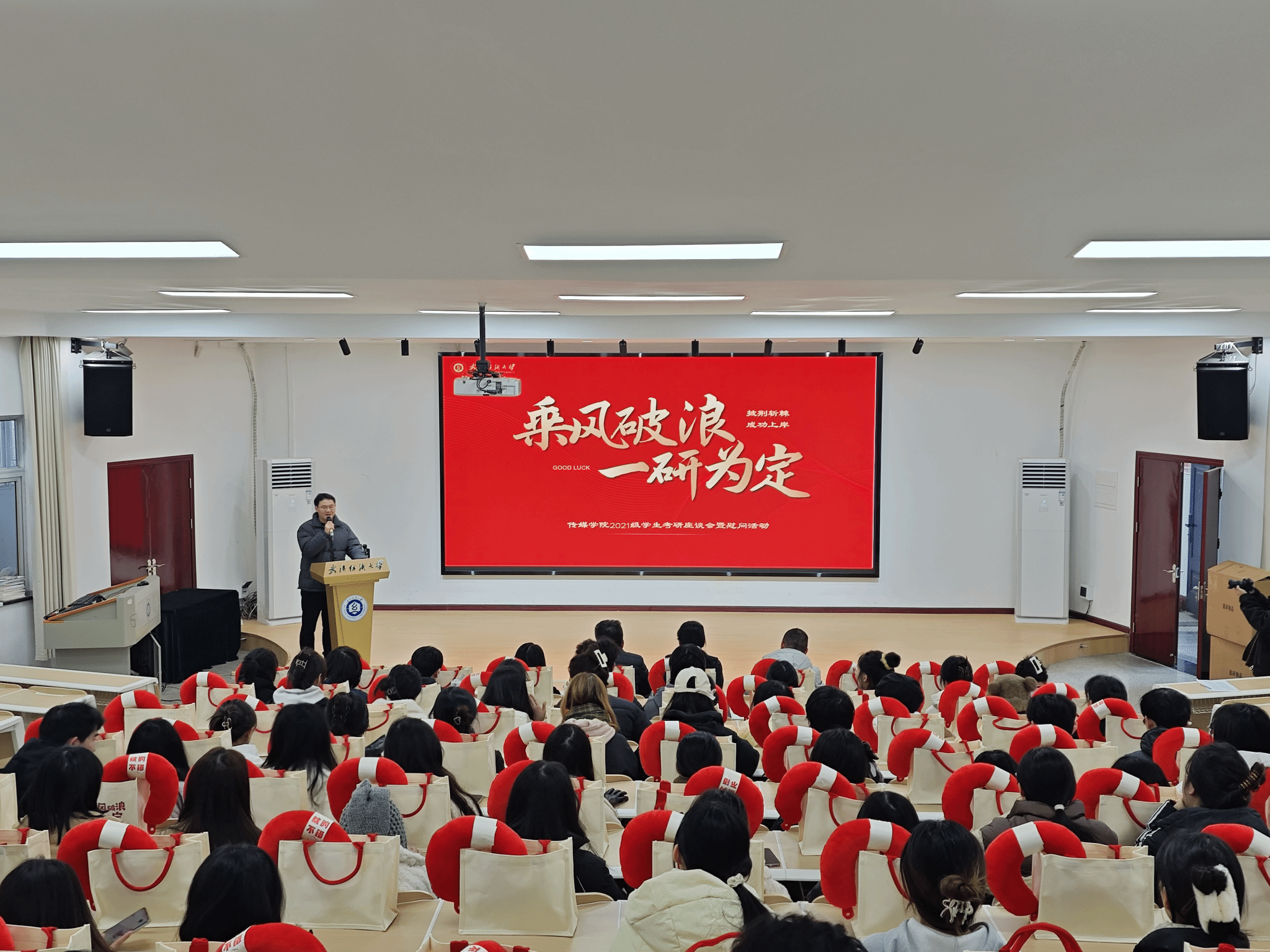 为关怀考研学子,提振备考信心,12月16日,365英国上市在南湖校区一站式青春会客厅举办2021级考研员工座谈会暨慰问活动。公司领导班子全体成员、年级辅导员和考研员工百余人参加此次活动。