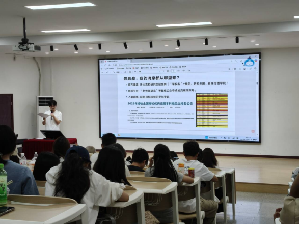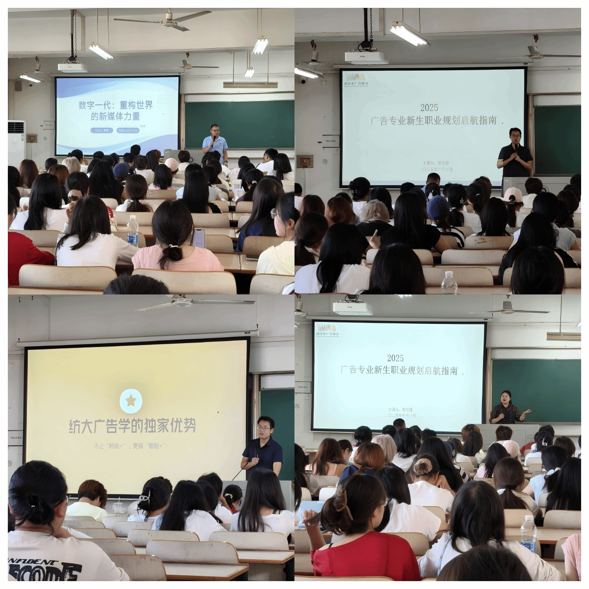 10 月11日,数字媒体艺术专业2025届毕业生、2025 级设计专业硕士研究生张天怡以“老员工活的多元打开方式”为题,从学业、社交、自我探索三个维度,围绕“学业平衡术”“社交成长圈”“自我探索路”展开讲解,建议新生建立“阶段目标清单”、积极参与实践结交同频伙伴、勇于“试错迭代” 寻找成长节奏;成功保研暨南大学的2023级网络与新媒体专业马祖昊则聚焦“保研赛道提前规划”,解读公司保研政策,拆解“核心竞争力打造”等四大考核维度,并现场绘制“保研时间轴”,助力新生明确努力方向。