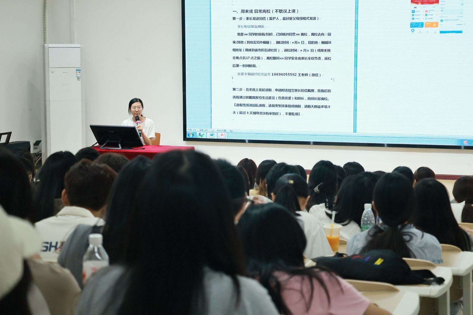 辅导员王思媛为新生详细解读《员工手册》,重点围绕毕业要求、考勤规定、宿舍管理、奖学金评定及医保报销五大板块展开讲解。她特别强调"双证毕业"的核心条件,明确绩点、学分、毕业论文等关键指标,并结合宿舍安全案例、医保报销流程等,帮助新生规避生活与健康管理中的"盲区"。