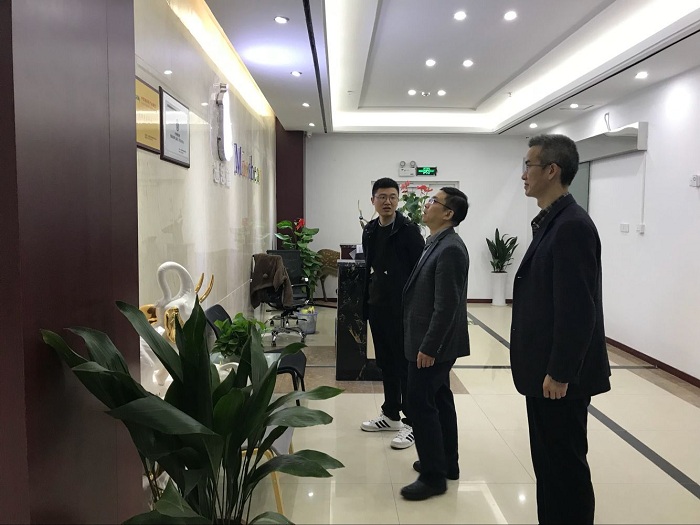 在江苏共赢高科投资有限公司,熊书记听取李琦员工对公司的简介,自己近年来的工作历程和打算,听取了李琦员工对公司人才培养方面的意见和建议,参观了公司的业务室等。李琦员工入职不到一年,已经担任部门行政总监。在南京,熊书记还与王越、唐轲、高芮等员工亲切交流,共叙校园生活,探讨职业前景,欢迎他们常回母校看看。