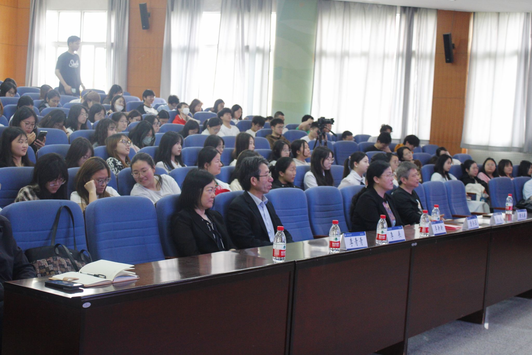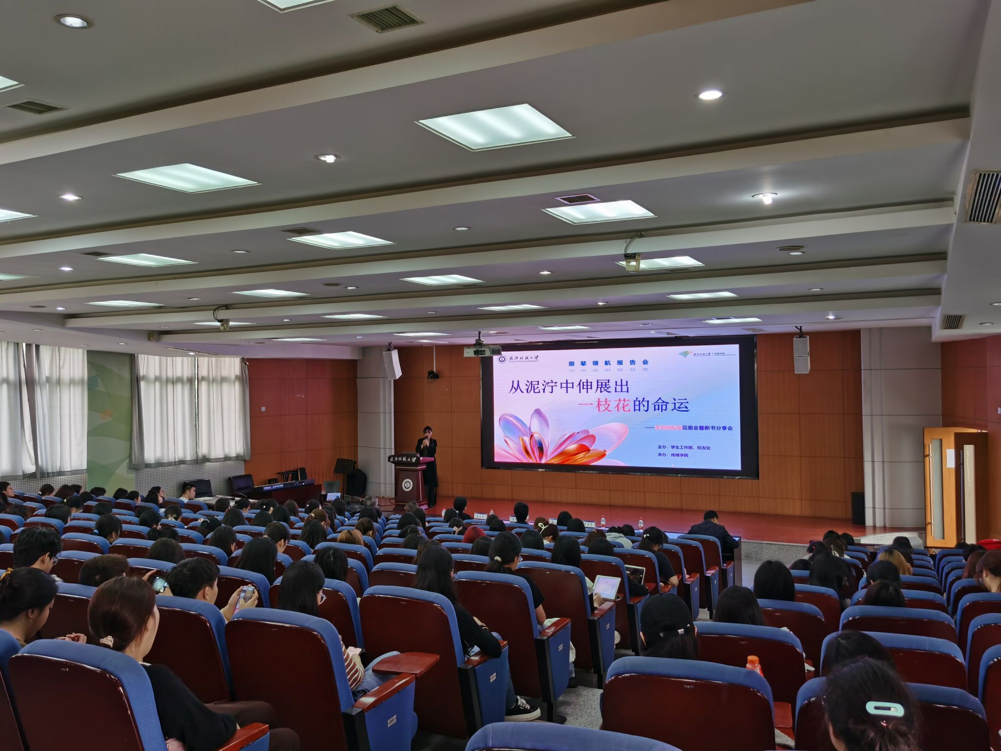 广电12101班吴智晴说道:“白日不到处,青春恰自来。苔花如米小,也学牡丹开。听了李新新学姐的分享,我被她身上坚韧乐观的品质打动,在受挫失意的时刻,依然坚定自己的理想。这场报告会让我明白,只要坚定目标,脚踏实地,把握当下,做一株扎根土地又自由生长的花,就可以让每刻闪光。”