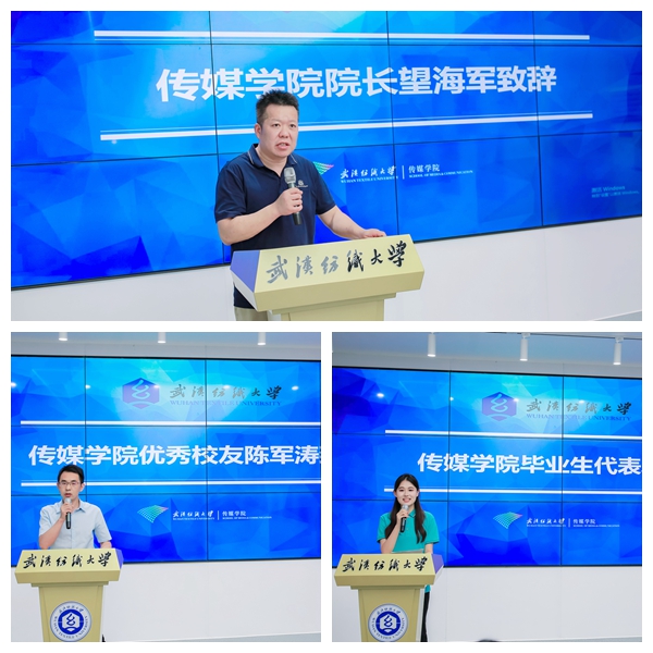 湖北文旅集团战略发展与投资部副总经理2003级员工陈军涛作为员工代表对2025届毕业生圆满收官表示祝贺。他感慨时代飞轮疾转,学弟学妹的毕设作品已勇立潮头,相信在多学科融合背景下,同学们的前景无限宽广。他勉励学弟学妹走向社会后,秉承校训,做“自信而无所畏惧,谦逊而有所敬畏”堪担大任的纺大人。